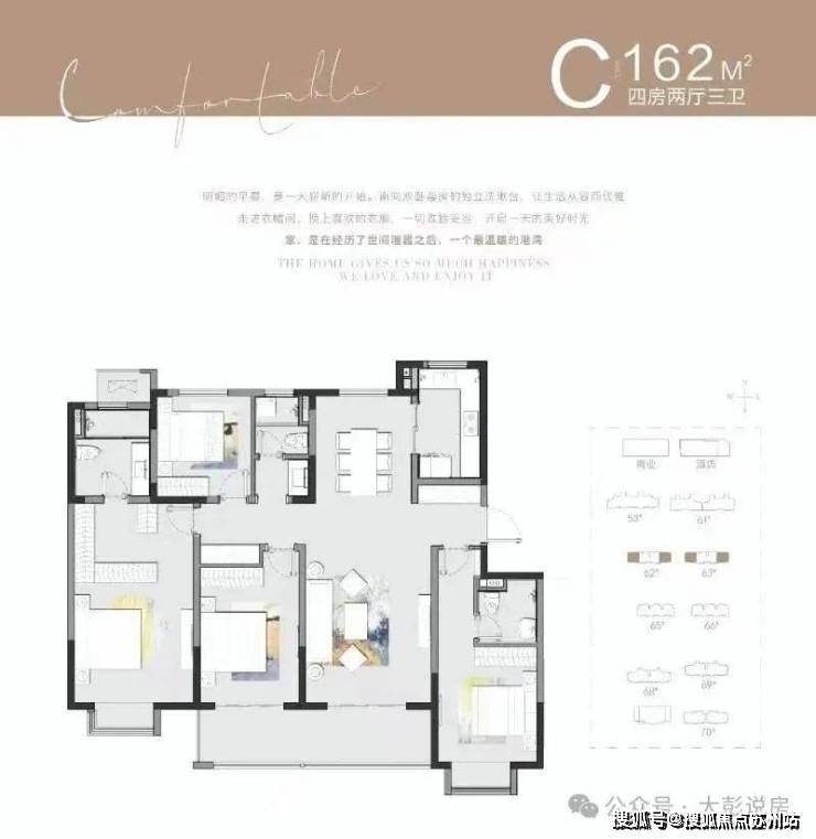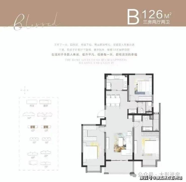 总价范围:126-128㎡三居室总价328万起;162-165㎡四居室总价460万-554.5万(部分含车位或家电);170-192㎡奢华洋房总价438万-594万,其中192㎡户型515万起。