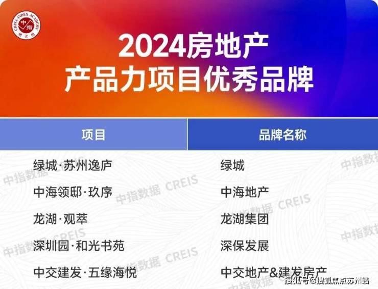 苏州逸庐荣获“中国房地产产品力项目优秀品牌”