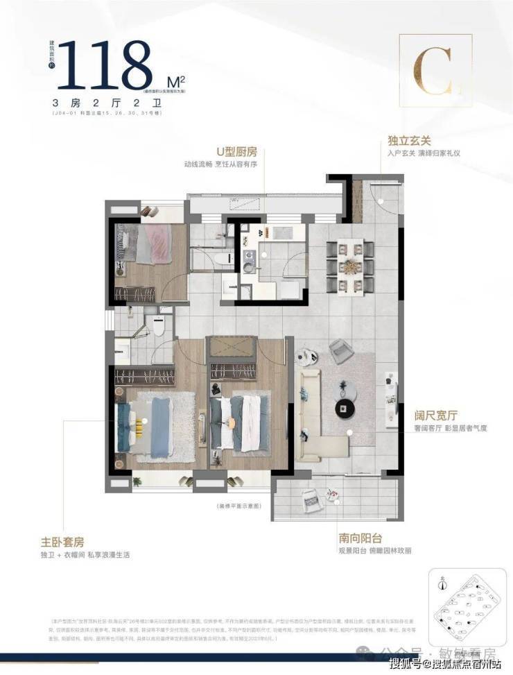 建面;C1户型118㎡ 三室两厅两卫