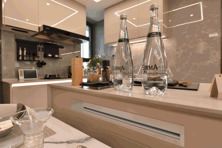 项目在厨卫方面同样甄选全德系TOP级精装品牌,包括西门子的壁挂式油烟机、大火力燃气灶、嵌入式洗碗机,唯宝的一体化智能马桶(主卫),高仪的恒温淋浴系统、面盆、龙头等。