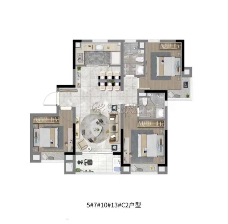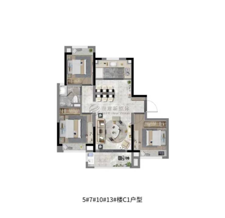 这个户型可以说是一步到位的改善户型了,三代同堂+二胎家庭同样可以拥有不错的居住体验,如果预算够得着,非常值得购买!