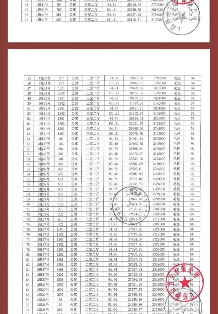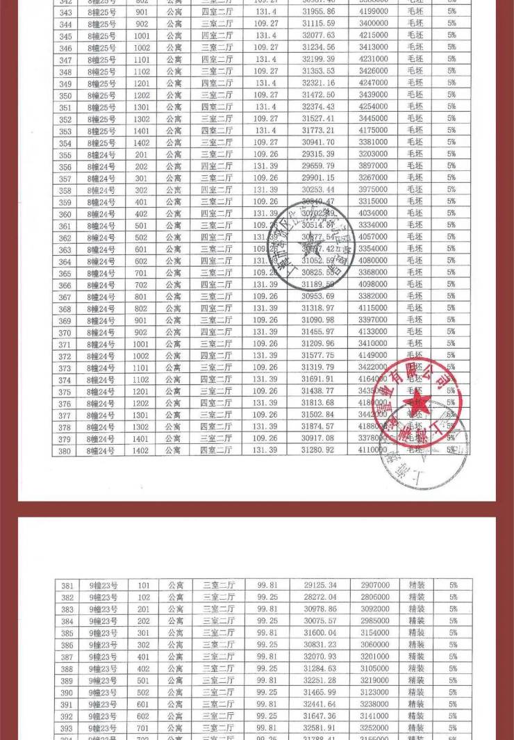 项目一房一价表