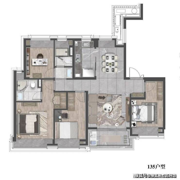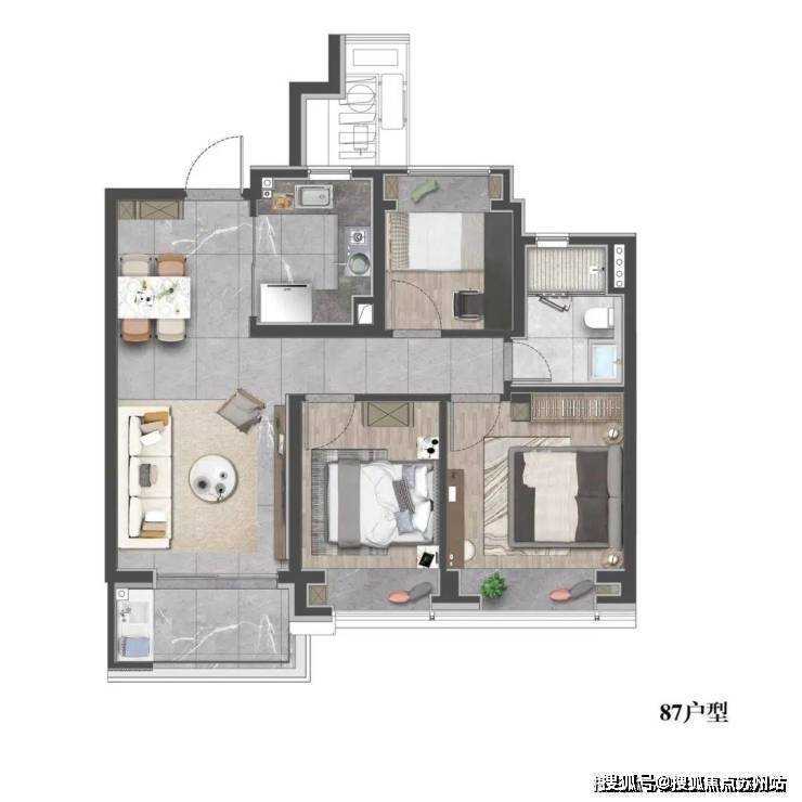 建面约99㎡3房2厅2卫,全明户型设计+LDKG一体化设计,尺度非常宽敞