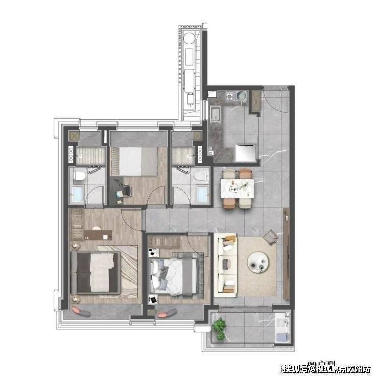所有卧室均带飘窗,居住起来不会感到压抑,采光更佳