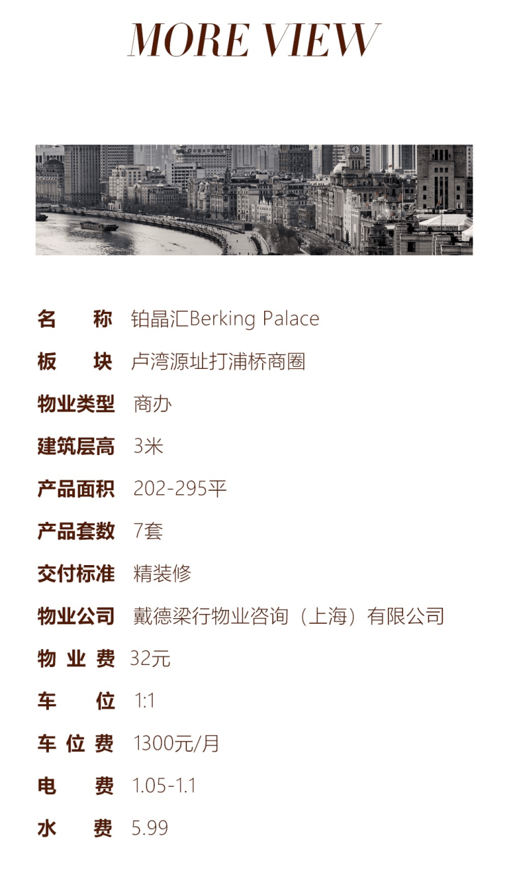 车位1:1车位费1300元/月电费1.05-1.1水5.99费