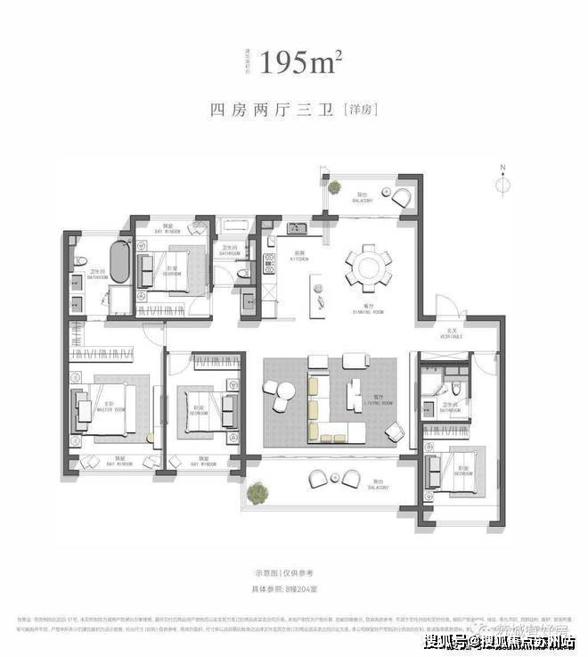建面约195㎡,四房两厅三卫[洋房]