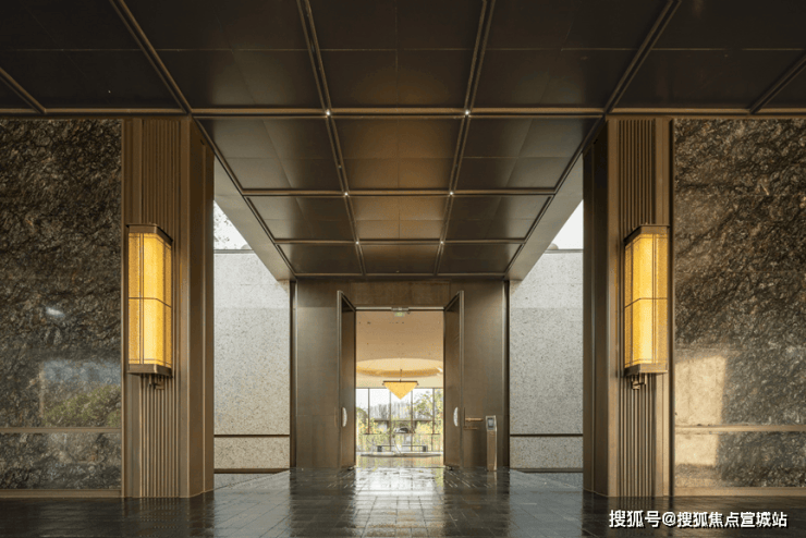 另外惊喜的是此次还展出了地下车库,车位整体采用环氧自流平工艺,车道融合自流平&超耐磨工艺,并以发光线条营造氛围高级感。与此同时地下大堂以海派风格发光板天花、浅色石材柱体搭配金属细节,通过人脸识别电动门开启归家仪式感。