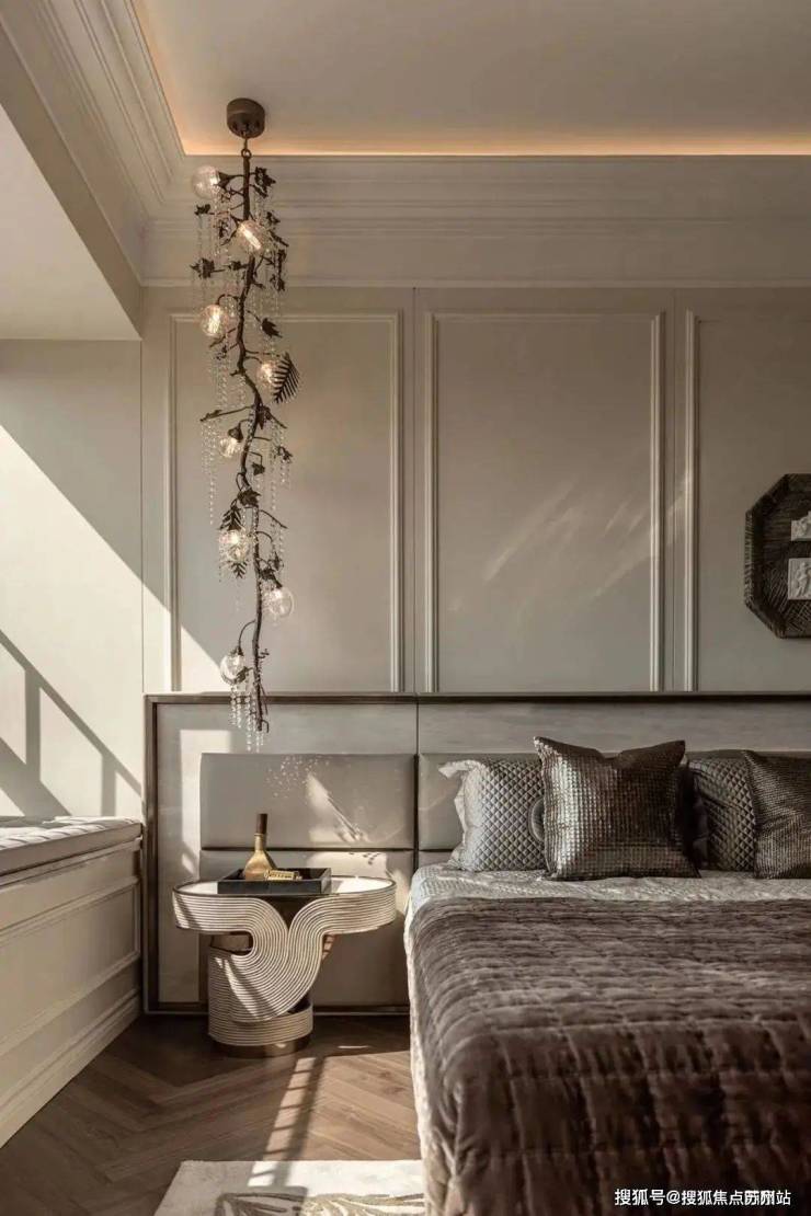 此外,通过精心挑选的吊灯、典雅的床头柜以及复古花卉装饰品的巧妙融合,为空间披上了一袭艺术华服,弥漫出一种别具一格的法式浪漫情调,令人沉醉不已。