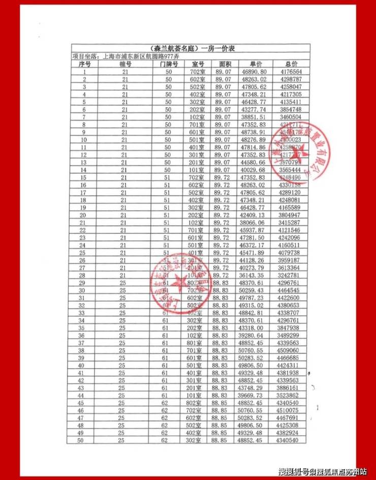 一房一价表: