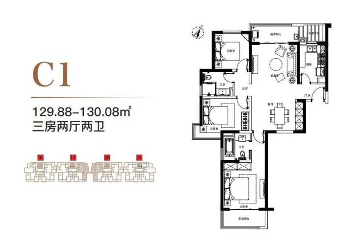 130m²餐客厨阳一体化设计,科学洄游动线,起居生活更方便;
