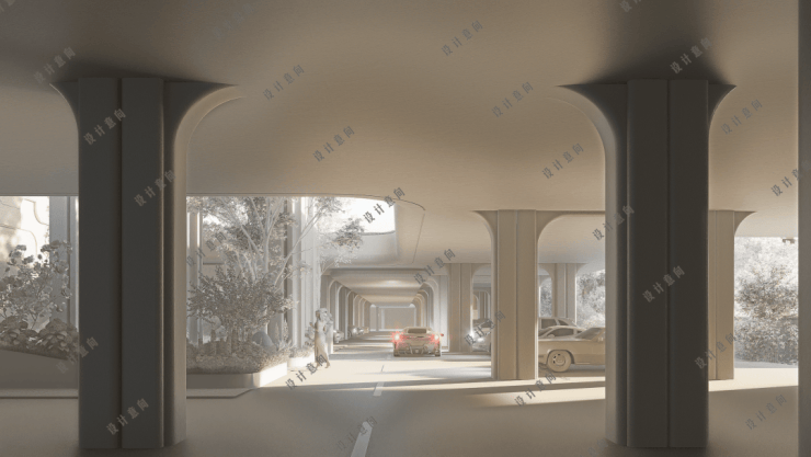 不同于传统项目地下车库依赖照明、易潮湿的弊端,抬板之后车库可设于首层(板下泊车),并通过下沉会所与每栋楼的下沉花园,将自然光与新鲜空气直接引入,打造“阳光车库”。