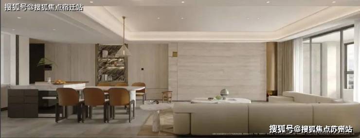 餐厅内设有尺寸大约为1.2米乘以1.5米的岛台,采用天然奢石威尼斯棕材质,这同样是交付标准!