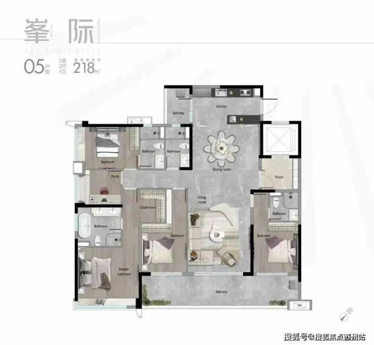 保利天汇的218平米五房户型设计非常宽敞豪华,具有多个亮点。首先,该户型拥有10米景观阳台,提供了优美的视野和充足的采光。