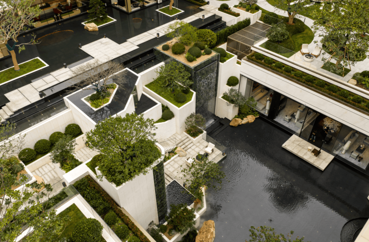 往里走,您会踏入一个立体的、全境洄游的园林。下沉庭院、镜面水院、阳光草坪,以多维垂直的角度,诉说着生活与风景的立体交融。