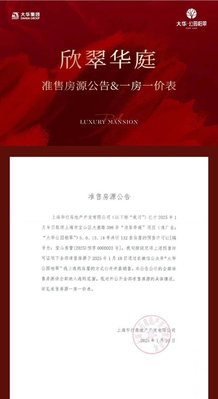 据悉,大华·公园柏翠此次将推约101㎡3房及142㎡4房(12#、15#、16#单元),共计132套房源,