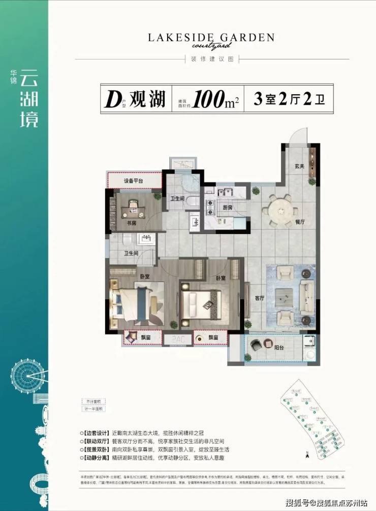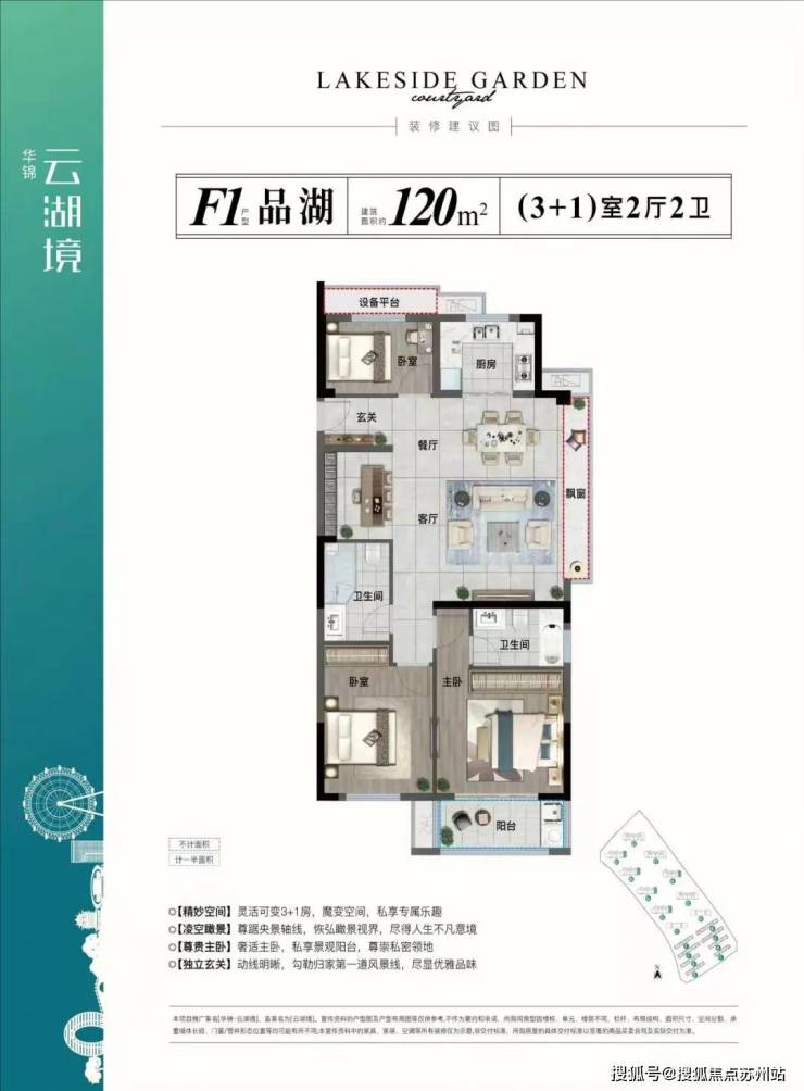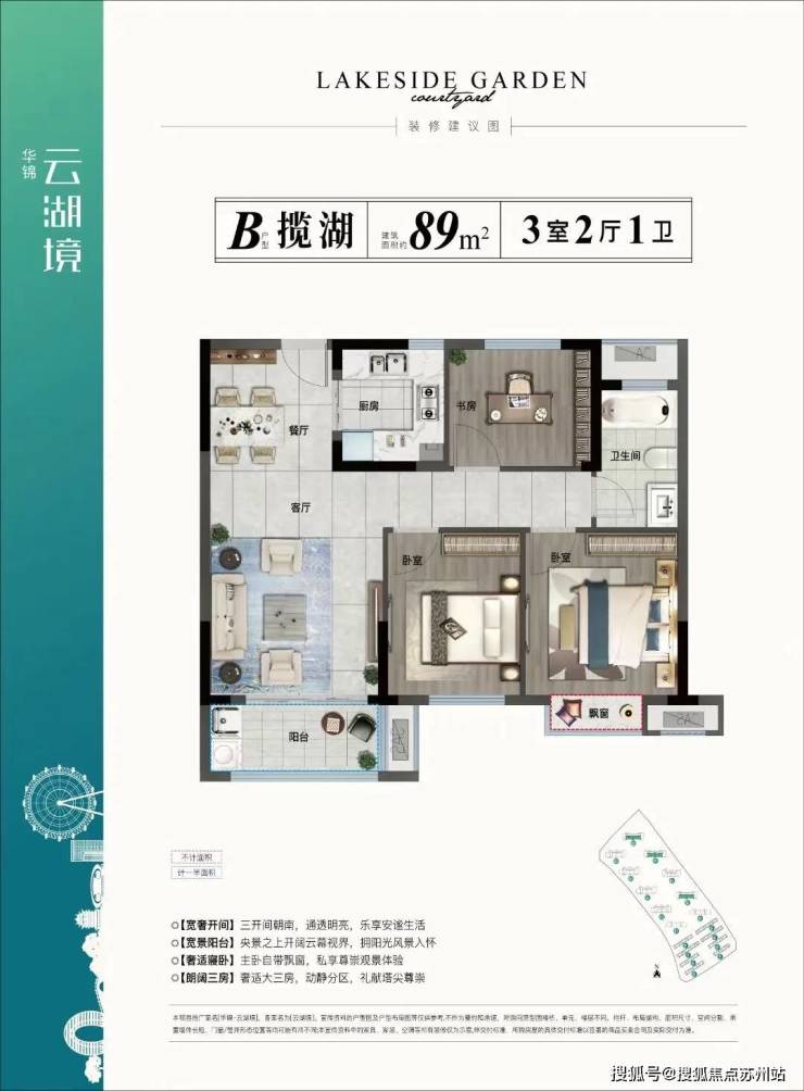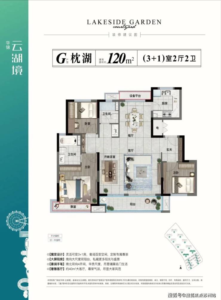 在户型设计上,强调以湖居特质排布功能空间,大面宽客厅、宽景阳台等,纳景入怀。