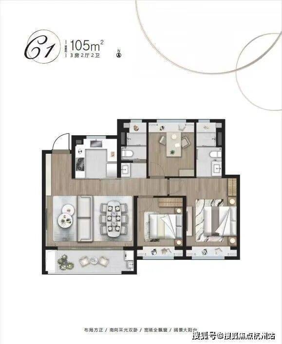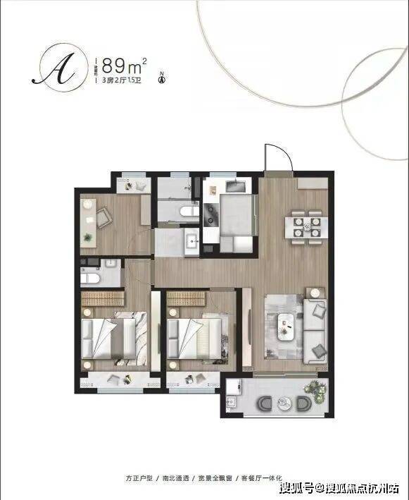 产品户型:容积率 2.0,21 栋小高层,一梯两户无连廊,得房率超 80%。主力 89-127㎡精装三房:89㎡1.5 卫(354 万起)、99㎡LDKB 一体化、127㎡四开间朝南双套房。配中央空调 + 新风,一线厨卫品牌。
