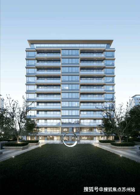 洋房外立面,由 浅灰色金属漆+深灰色铝板+玻璃组成,很有质感。