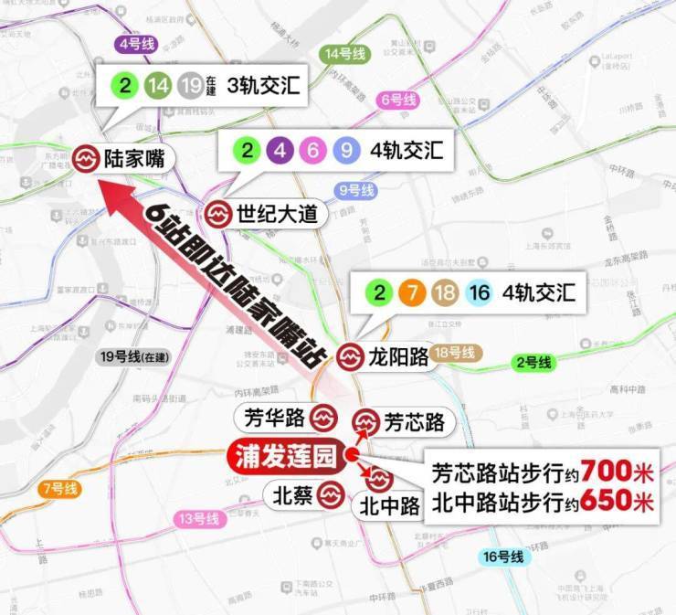 项目坐拥18号线芳芯路站(约700米)、北中路站(约650米),1站龙阳路(4线换乘枢纽),2站世纪公园,6站即达陆家嘴.