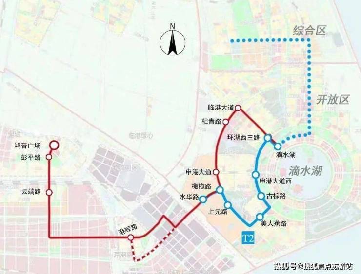 同时,区域内连接主城区各个板块的临港中运量也在进行规划和建设,其中T2线远期还将从滴水湖站向北延伸,交通将更加通达。