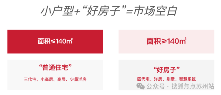 在这个好房子为主旋律的时代,苏州真正的好房子,比如四代宅这样的概念,几乎只存在于“大面积+高总价“的组合中。小面积的“好房子”,是苏州市场的一块空白。