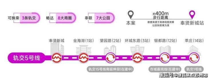 轨交网络:5号线、15号线南延伸段(在建中)、市域嘉闵线南延伸段(规划中)、沪乍杭高铁(规划中)及南枫线(在建中)