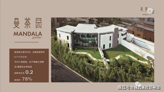 曼荼园占地280亩;总建:筑面积约61715平方米共计81栋建筑:由79栋独立别墅及2幢商业会所组成容积率仅为0.2绿化率78%