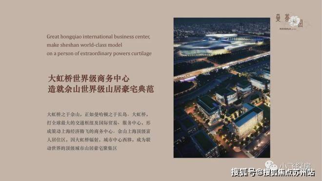 Greathongqiaointernationalbusinesscenter,makesheshanworld-classmodelonapersonofextraordinarypowerscurtilage大虹桥世界级商务中心造就佘山世界级山居豪宅典范大虹桥之于佘山,正如曼哈顿之于长岛。大虹桥,打全球最大的交通枢纽及国际贸易、服务中心,形成策动上海经济腾飞的商务中心。佘山上海顶级富人居住区,因大虹桥辐射,城市中心西移,成为联动世界的顶级城市山居豪宅聚集区