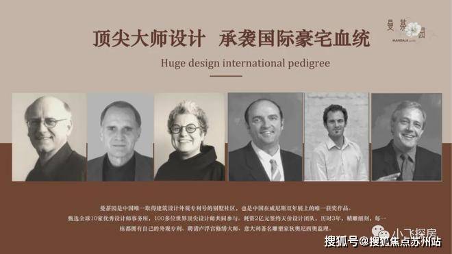曼荼园是中国唯一取得建筑设计外观专利号的别墅社区,也是中国在威尼斯双年展上的唯一获奖作品。甄选全球10家优秀设计师事务所,100多位世界顶尖设计师共同参与。耗资2亿元签约天价设计团队,历时3年,精雕细刻,每一栋都拥有自己的外观专利。聘请卢浮宫修缮大师、意大利著名雕塑家狄奥尼西奥监理。