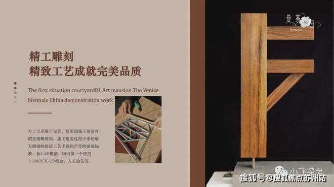 Thefirstsituationcourtyard81ArtmansionTheVenicebiennaleChinademonstrationwork为了力求臻于完美,曼图园施工建造可谓是精雕细刻,施工建造过程中采用最为精细的建造工艺手段和严苛的建筑标准,如1:20模型、国内第一个使用1:1MOCK-UP概念、人工涂艺等。