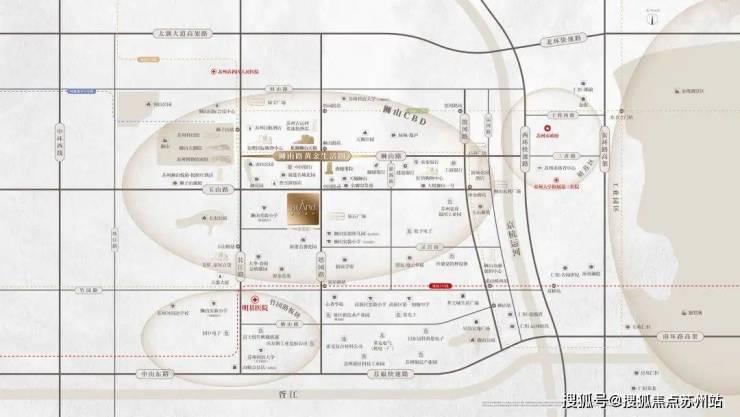 约2.9公里的狮山路,连接着京杭大运河与狮山文化广场,一半狮山一半湖的狮山公园触手可及,狮山龙湖天街、金鹰、淮海街共同交织的生活图景目不暇接,苏州博物馆(西馆)、狮山大剧院等林立的文化艺术原址挥洒着当代松弛栖居的人居理想。