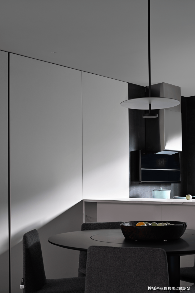 墙面棱角与家具线条直接简练,严谨的秩序中略有灵动之意.家正在理性与感性直接反复拉伸,温暖诠释着“容器”的意义——盛放时间,包容记忆,链接未来.