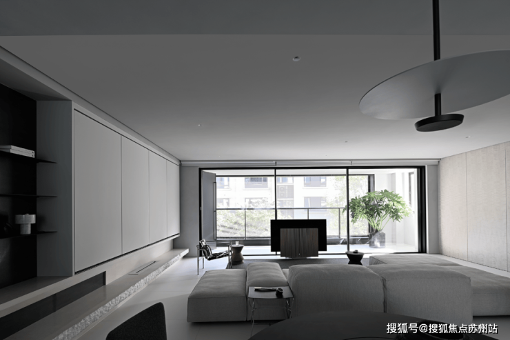 客厅外部带有一座阳台,源源不断地向室内输送清风、暖阳,外界的气息与家的静好氛围亲密交融,空间的流通性进而变得更强.谁说极简空间注定一成不变?心性活络,生活当然会更加有趣.