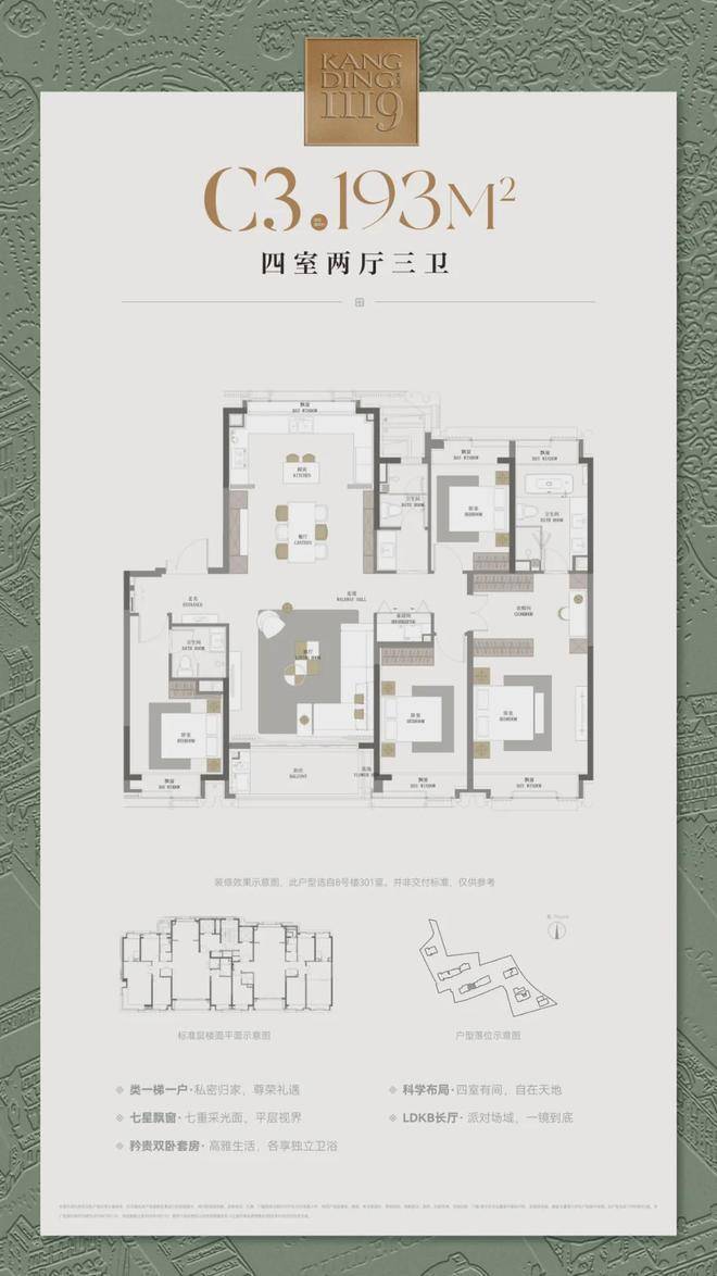 在当下上海豪宅在内卷的 立面、会所、奢材、户型与装标 这些方面,康定壹拾玖都是用 玺系之上,且远超行业标准的水准在打造