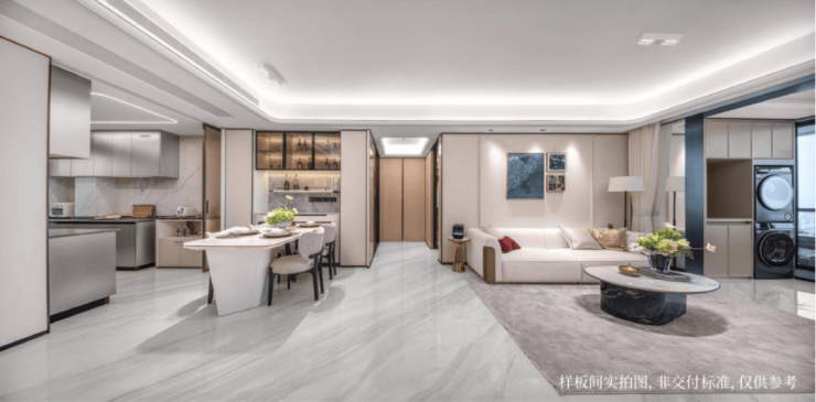 另外,室内每扇门下都安装了底吸,配置了静音门锁;所有户型都设计了同层排水,并配置了特殊设计的降噪管材;楼板做到了130mm以上厚度,搭配YKK门窗系统,用这种“全域静音”的方案去保障住所的宁静舒适。