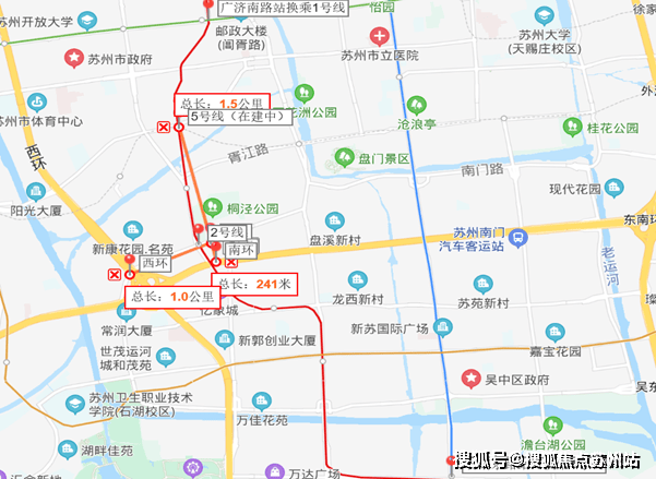 项目西侧约200m处为苏州地铁2号线桐泾公园站,与5号线在劳动路站交汇,与1号线在广济南路交汇,与4号线在石湖东路交汇。