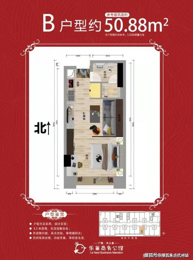 交付标准:毛坯现房,层高3.3米,部分户型可改造为两房