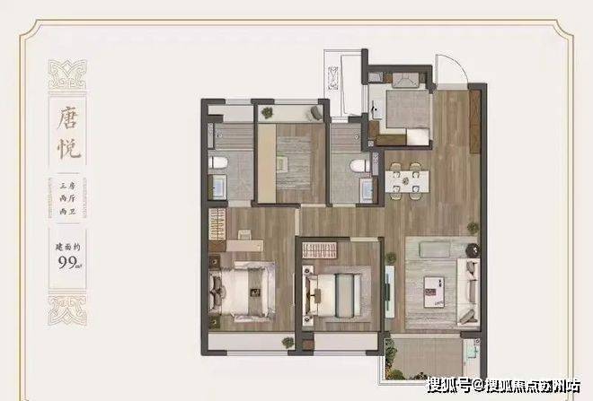 高层建面约99㎡3房2厅2卫