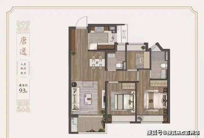 高层建面约93㎡3房2厅2卫