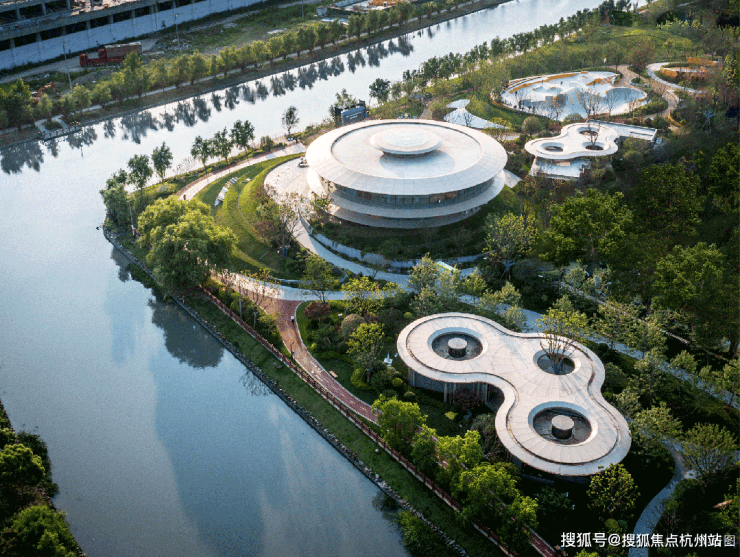 该项目将公园与天然水系整合到社区中,通过一个约3万方的运动竞技公园和一个约14万方的滨水艺术潮流公园,结合城市绿地,共同构建约20万方的滨水双园,最终在自然生态基础上打造出超级TOD生活场域。
