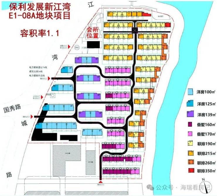 地块本身就处于新江湾城湿地和水系包围之处,从小区的楼栋分布图来看,滨河的基本都是大面积的联排别墅户型,景观应该相当不错。