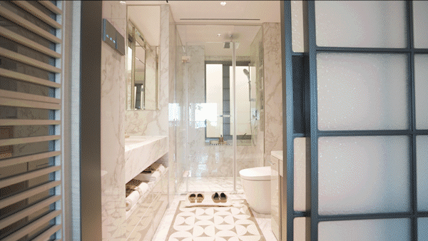 女性友好的公卫主卫。酒店式化妆镜一键除雾、女王化妆柜、公卫预留扫地机器人......