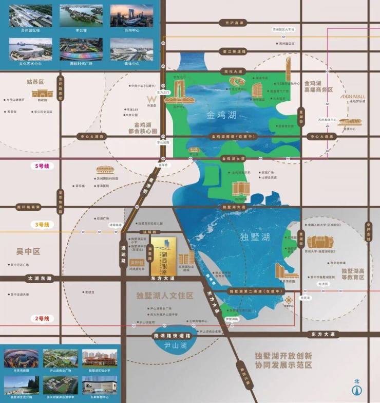 黄金地段,苏州公认的高端住区 “湖西银座”位于与园区紧密相连的双湖板块,这里是苏州现代化和国际化的一面。北有金鸡湖,南有独墅湖,周边CBD、地标建筑林立,是公认的高端生活区。项目坐拥独墅湖畔,高层视野开阔,既能享受双湖的繁华都会气息,又能俯瞰难得的湖光景色,地段价值不言而喻。