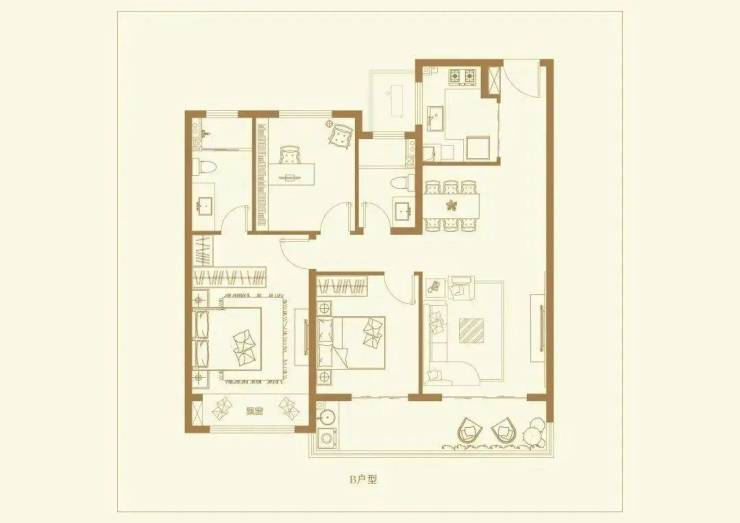 B户型 方正三房/南北通透 建筑面积约116㎡/3房2厅2卫