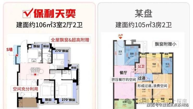 常规项目只有三个卧室有飘窗,而保利天奕做到“全屋飘窗”。不仅厕所、厨房间都有飘窗,边户还做到双约270°飘窗。