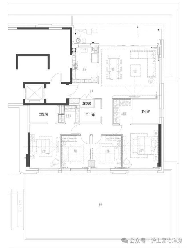 三房两厅三卫,入户玄关,270视野转角边厅,中西双厨,豪华主卧套。