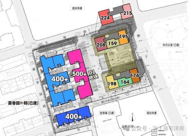 回顾整个露香园二期地块的开发进程,由于要维持旧街区风貌的同时焕新城市,工程难度之大可想而知。方案稿直到2022年7月才调整完毕,予以公示,项目总共分为6个地块。