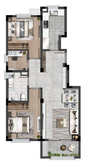 洋房产品共 192 套,为 80 / 90 ㎡的二房二厅一卫户型。
