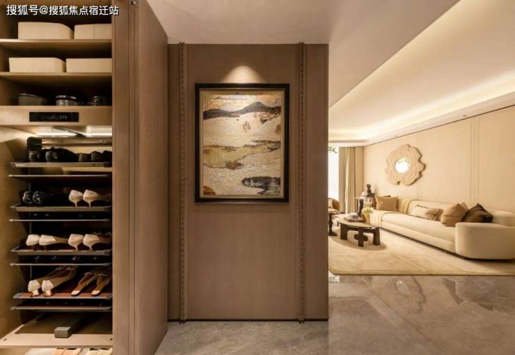 全系私厅入户,电梯直达独立玄关。精心设计的玄关800库系统,从鞋帽到出行物件,均能一一收纳。