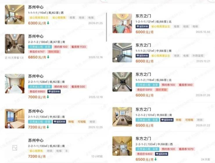 目前湖西比较具有代表性的同类产品有苏州中心、东方之门等,百平左右的户型月租金6k+。